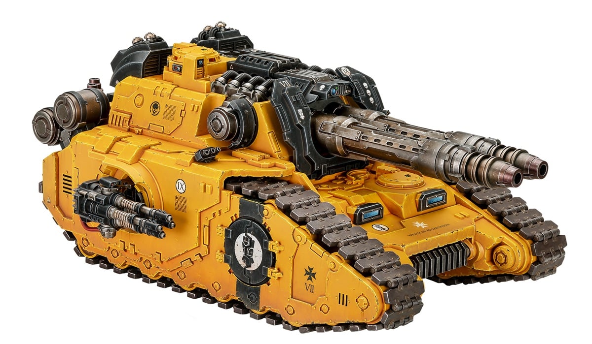 If (for some reason) things to get a little closer you’ve also got a pair of sponson side turrets to unleash. How you equip your Falchion is really up to you. Would you opt for the heavy bolters to help clear out the chaff? Maybe the Autocannons to clear out some light armor or help with void shield removal? OR do you go with Lascannons just to mop-up anything that’s left?