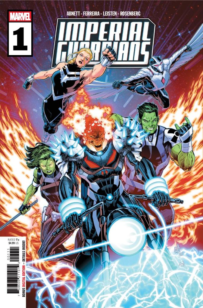 Gamora, Captain Marvel, Amadeus Cho, Darkhawk, Cosmic Ghost Rider! Five unlikely operatives recruited by Maximus of the Inhumans. Their mission? Protect the delicate balance of new Galactic Union by ANY means necessary…and failure is NOT an option. Expendable, deniable and disavowed, they are the Imperial Guardians. But can they do Maximus’ dirty work and keep their consciences clean? Why has a Kree Grand Admiral gone rogue and attacked Hala? What’s going on with Darkhawk’s mind? What deluded fool thought COSMIC GHOST RIDER was a team player? And, most importantly…what kind of game is Maximus REALLY playing? Imperial Guardians #1 doesn’t break any ground, but it does deliver an entertaining start.